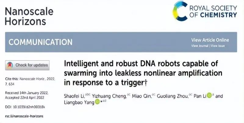 近日,纳米材料领域顶级期刊《纳米视野》发表了一项中国科学家的更新纳米机器人研究成果:来自中科院和安徽大学的联合团队成功构建出首个可非线性云集“围攻”生物靶标分子的智能DNA纳米机器人模型。简单来说,就是中国科学家利用生命遗传物质DNA为纳米机器人缔造了“血肉之躯”。