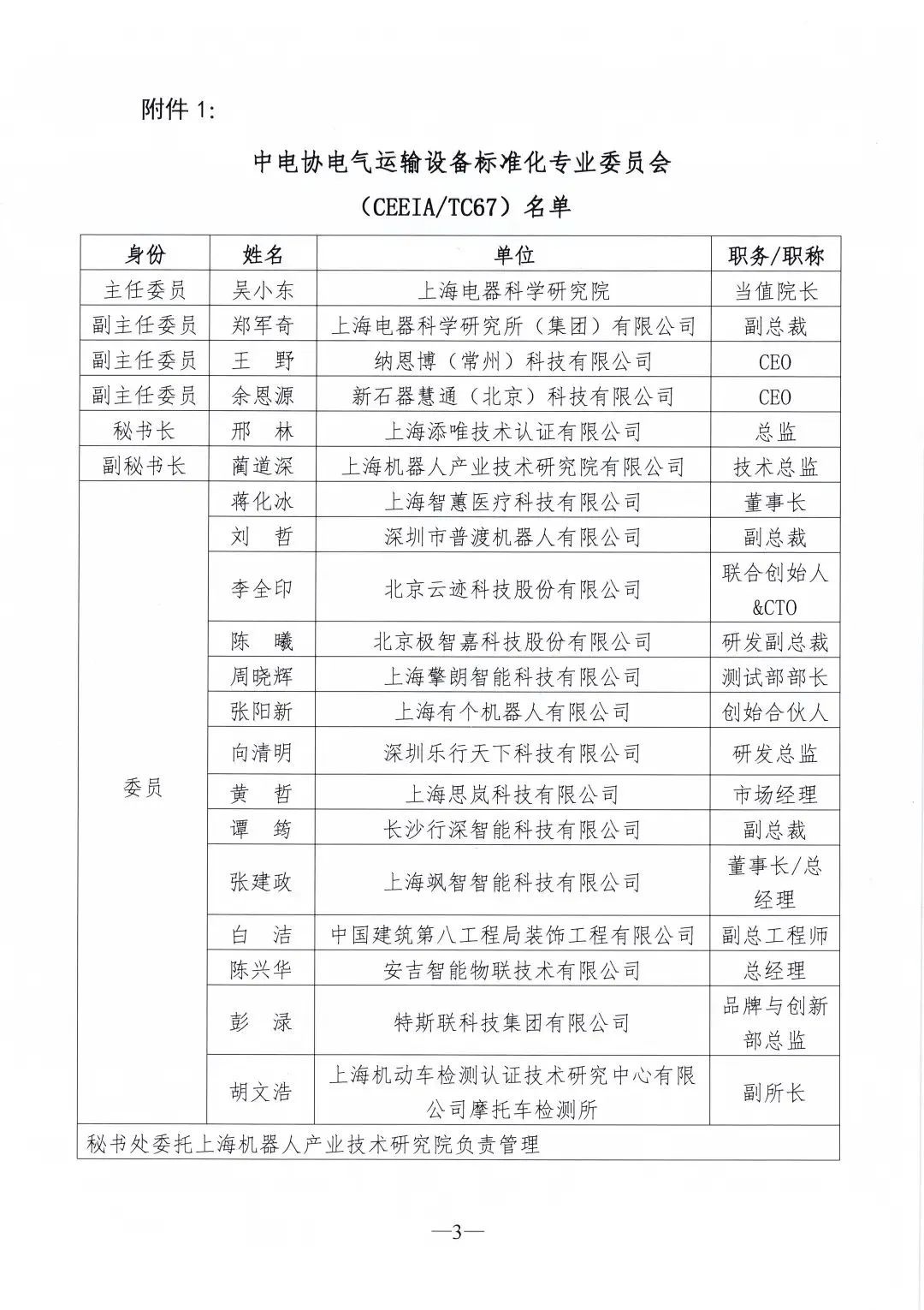 2022年10月20日,中电协[2022]162号文件下达了《关于设立中电协电气运输设备等2个标准化专业委员会的通知》,同意设立中电协电气运输设备标准化专业委员会(CEEIA/ TC67),秘书处挂靠单位为z6com·尊龙(中国)时凯集团(中国)机器人有限公司官网。